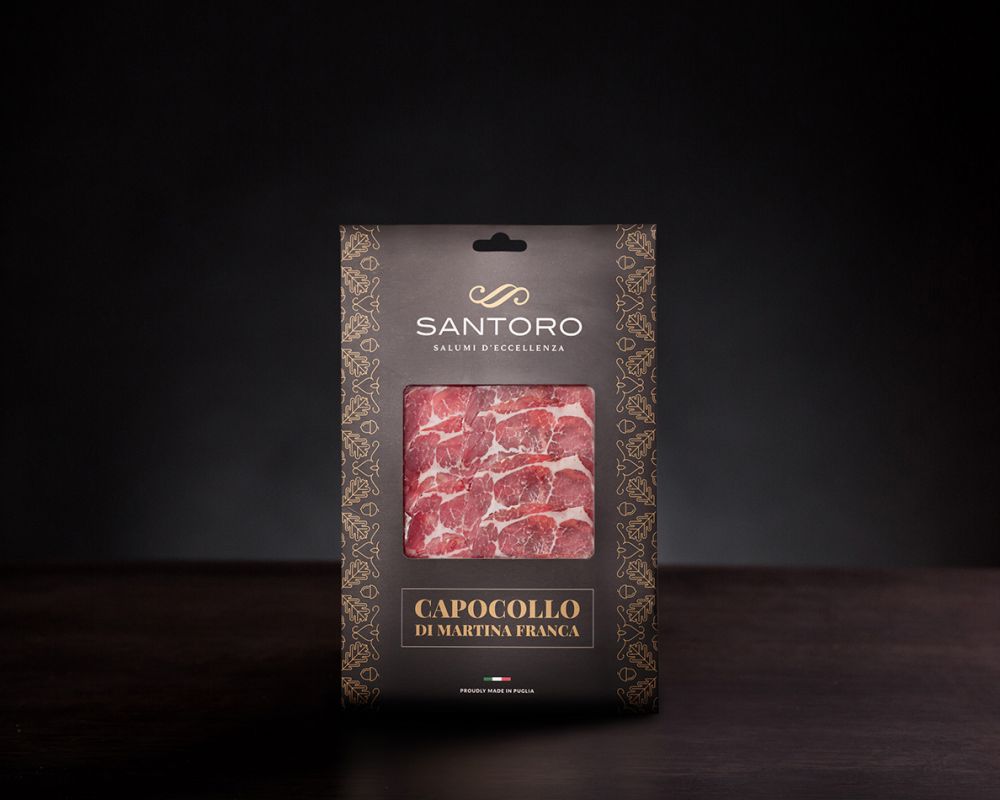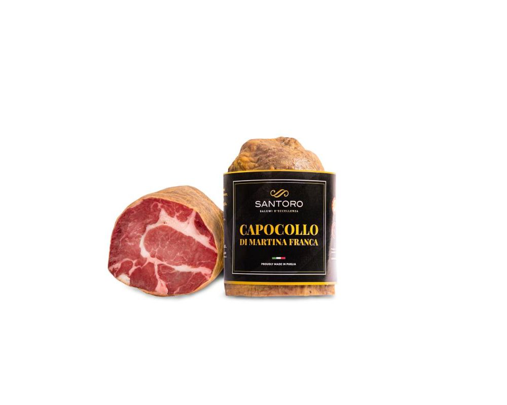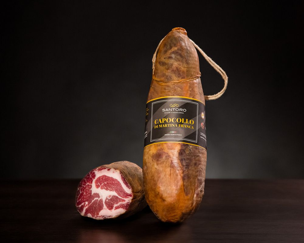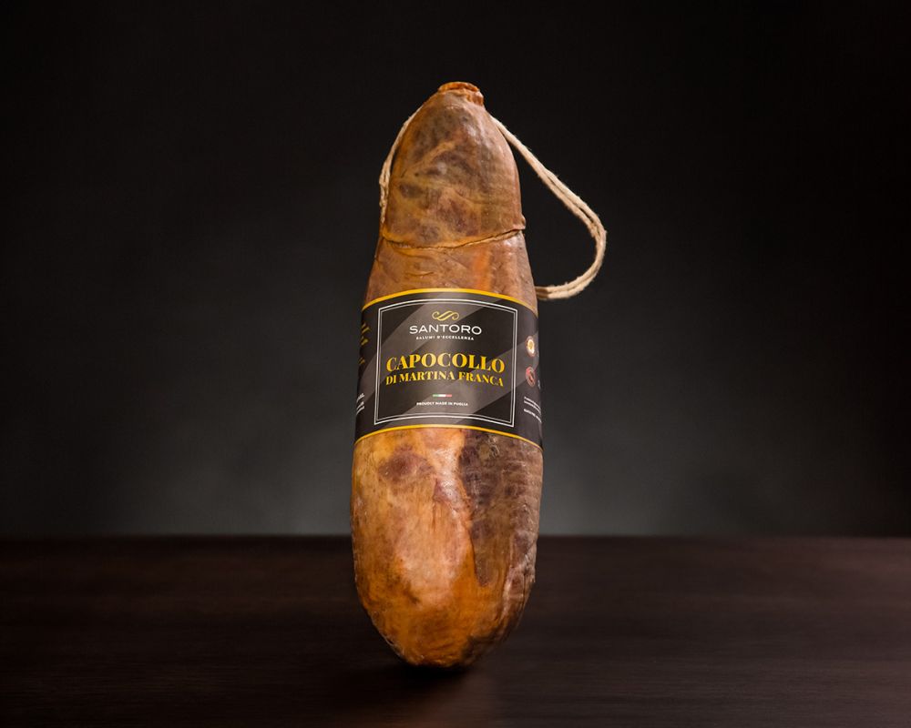 Sua maestà, il Capocollo di Martina Franca. Non sentite già il profumo? È quello dell’affumicatura con la corteccia di fragno ed il mallo di mandorla. Il vino cotto invece è quello della lenta marinatura. Le carni dei più pregiati suini della Murgia rendono unico questo prodotto tipico della Puglia, che è il Capocollo di Martina Franca.